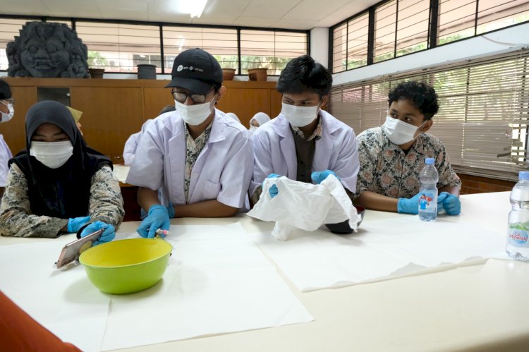 Puas bermain kuis, adik-adik SMA mendapat kesempatan untuk mempraktekan kegiatan konservasi sederhana. Mengenakan jas laboratorium putih, bermasker, memakai sarung tangan karet, bersenjata sikat gigi dan kuas; mereka pun menjadi konservator dadakan.